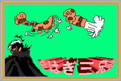 「わたしはお笑いキャラじゃないぞ、いっしょにすんな!!」ほんとに、ブラック・ジャックから声が聞こえてきそう。一コマで物語を感じさせるってむずかしいですよね。楽しい絵です。 |