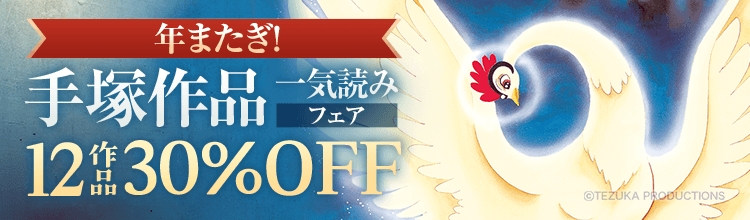 電子書籍店イーブックジャパンにて、「手塚作品 一気読みフェア」を開催中です。本日より1/6まで、長編作品12作品をセット販売30%オフにて販売中です。