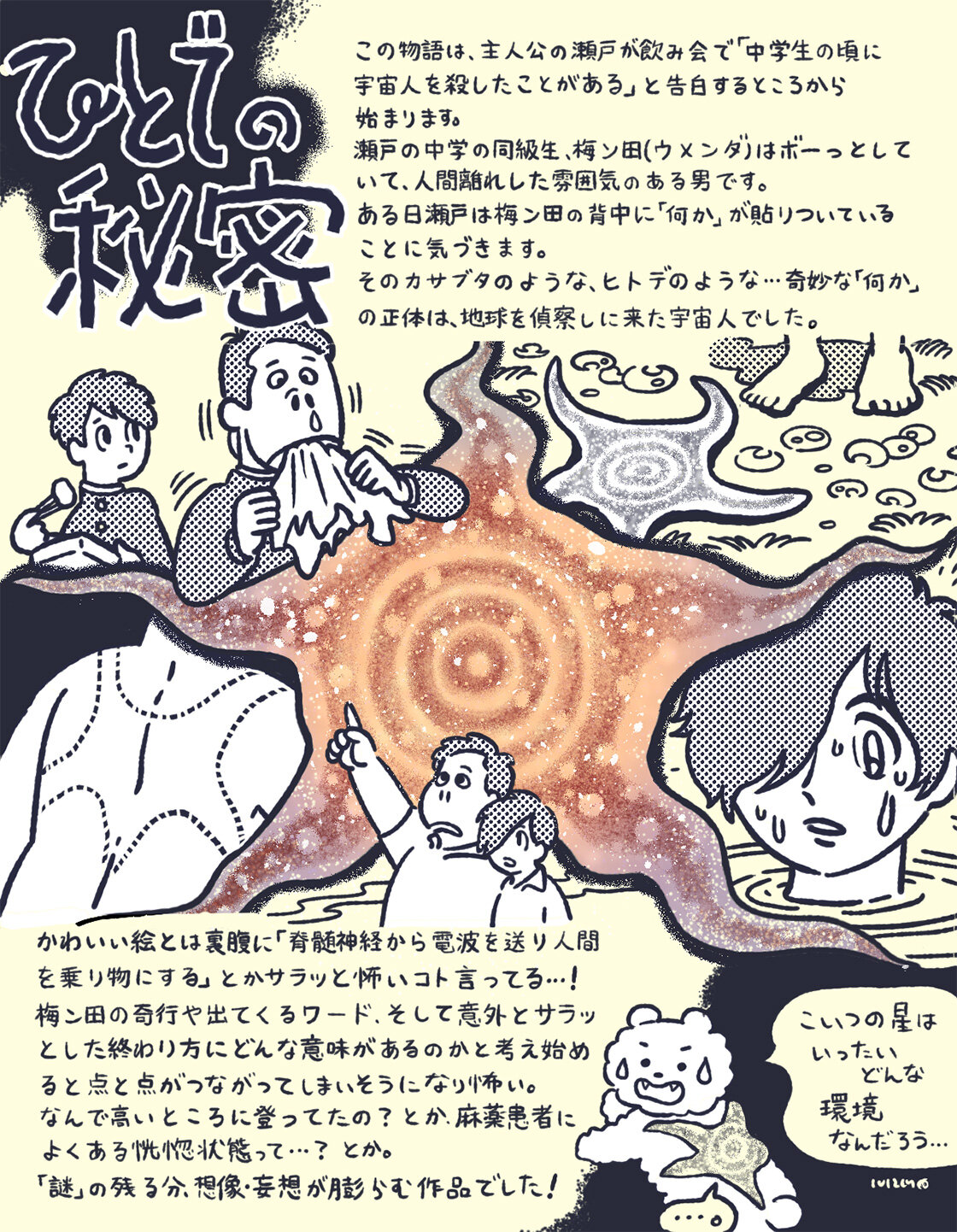 「ひとで」とは一体なんなのか...? コラムでも画面いっぱいに描いていただいたなんとも不気味な「ひとで」の秘密が気になったら、ぜひ原作も読んでみてください。