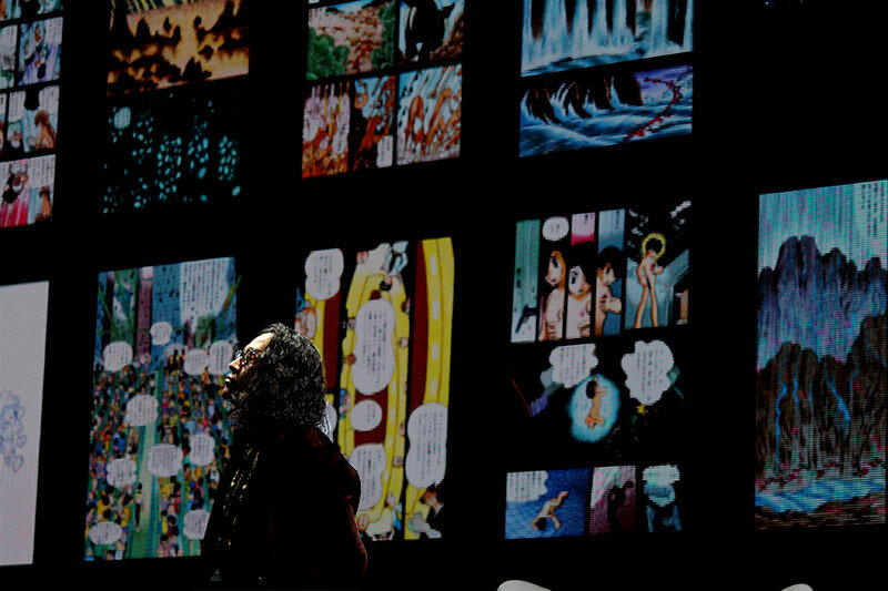 舞台には巨大なLEDスクリーンがあって、そこにマンガの原稿がどーんと映し出されます。