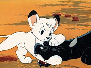 白いライオン、パンジャとその子レオを中心にして大自然の中で繰り広げられる弱肉強食の生存競争や、人間と動物とのかかわりなどを描いた大河ドラマです。 日本ではじめてのテレビ用カラー・アニメーションで、そのため色のつけ方ひとつひとつにも何度も試行錯誤が繰り返されました。また音楽もそのまま劇場用映画として転用できるようにと、最初から重量感のある大シンフォニーが用意されました。(いまでも日本のアニメ作品には実写映画よりも音楽に予算をかける傾向がありますが、それはこの『ジャングル大帝』の成功に倣ってのことです。しかしこの『ジャングル--』で試みられた、全編に渡ってオーケストラが画面を観ながら演奏して行く、というハリウッド式録音スタイルまでは真似できてはいないようです)手塚治虫がこの作品をアメリカに売り込みに行った時、向こうの担当者が「これがテレビアニメの音楽ですか!」とびっくり仰天した、というのも有名な話です。ちなみにアメリカでは『キンバ・ザ・ホワイト・ライオン』というタイトルでオンエアされ、人気を博しました。