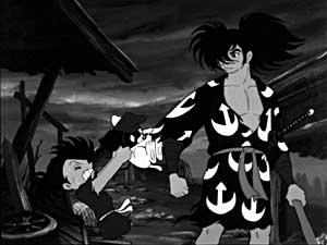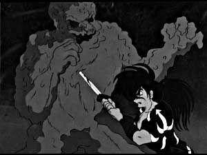 室町時代の中ごろ、応仁、文明の大乱を経た1470年代の出来事、という設定になっています。舞台は北陸、そして能登半島。体の48箇所がなく、人間とは言えない主人公は作り物の体で、自分の分身ともいえる48匹の妖怪と戦いながら、自分の体を取り戻して行く、というお話です。また14、15、18、19、20、23、25話は、原作にはないエピソード、つまりテレビ用オリジナルストーリーとなっています。途中でタイトルが『どろろと百鬼丸』というふうに変更になったのは、百鬼丸のほうが子供のこそ泥、どろろよりも活躍場面が多く、また妖怪退治こそがメインのストーリーだったせいで、視聴者にはどうしても主人公が百鬼丸にしか見えなかったせいです。パイロット版とは異なり、モノクロで放映されたのは、ひとえに予算のせいだと言われていますが、モノクロだからこそ、余計に妖怪たちの不気味さが伝わってくる作品となりました。