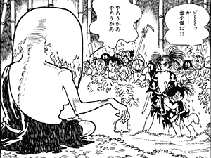 連載当時は、ちょうど水木しげるの描く妖怪マンガがブームだったため、それとくらべて語られることが多かったのですが、『どろろ』は、むしろ妖怪マンガというよりは貴種流離譚(きしゅりゅうりたん)と見ることができます。