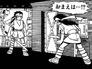エミヤは、グロマン国の王子・ピラールに気に入られますが、エミヤは圧政に反抗するククリット人に手を貸したため、お尋ね者となり、剣の達人のジンバに助けられて荒野に逃げました。